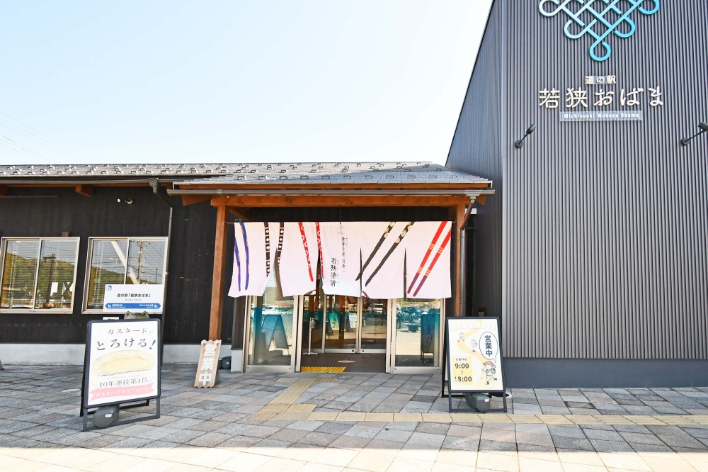 舞鶴若狭自動車道「小浜IC」から車で約1分というアクセスの良さと、焼き鯖寿司やへしこなどの鯖の加工品、若狭のお酒、地元の和菓子、若狭塗り箸などの工芸品など、小浜の特産品をたくさん取り揃えた人気の道の駅です。