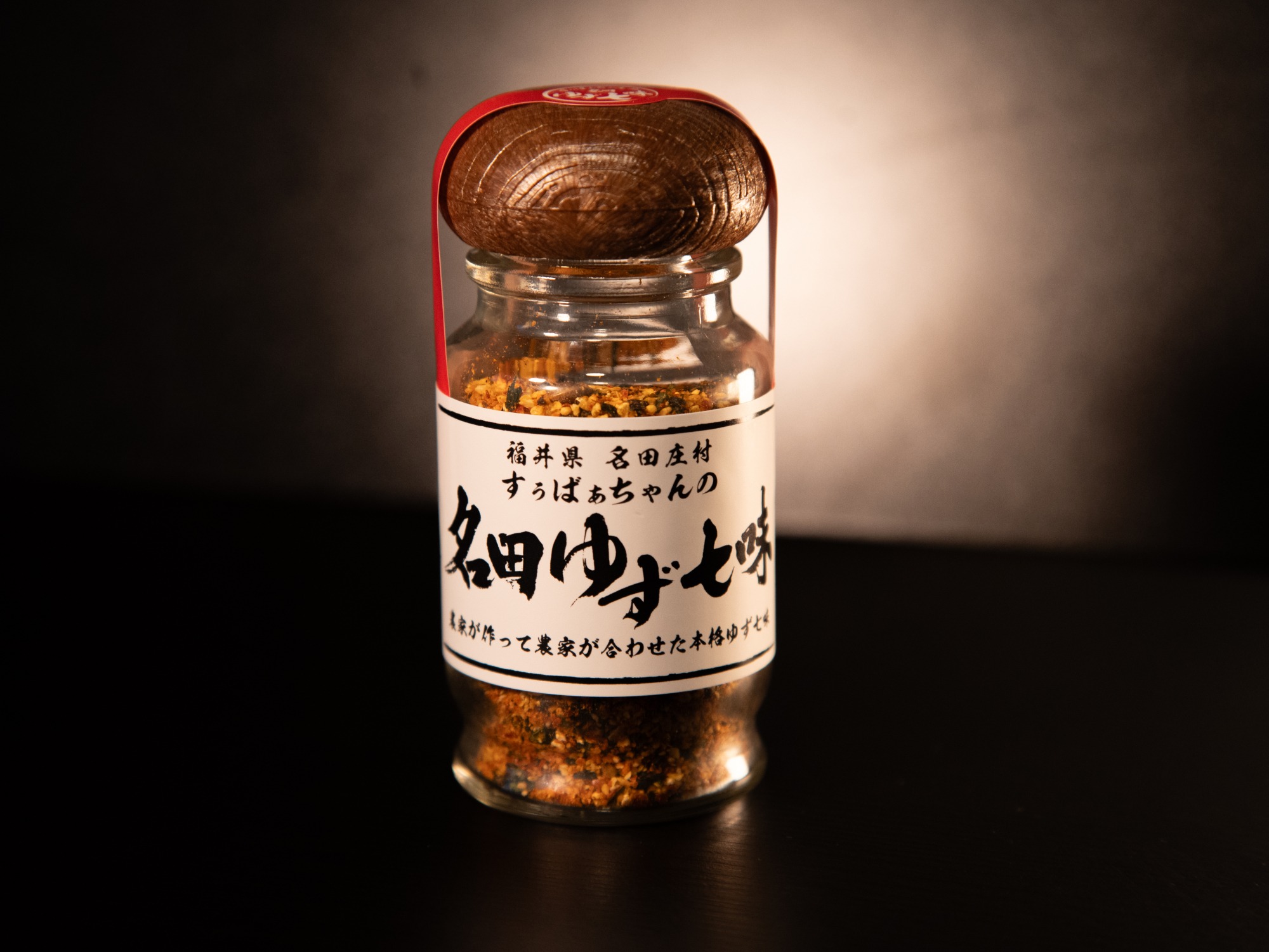 名田庄の農家・すぅばぁちゃんが作って、混ぜ合わせた本格的なゆず七味です。