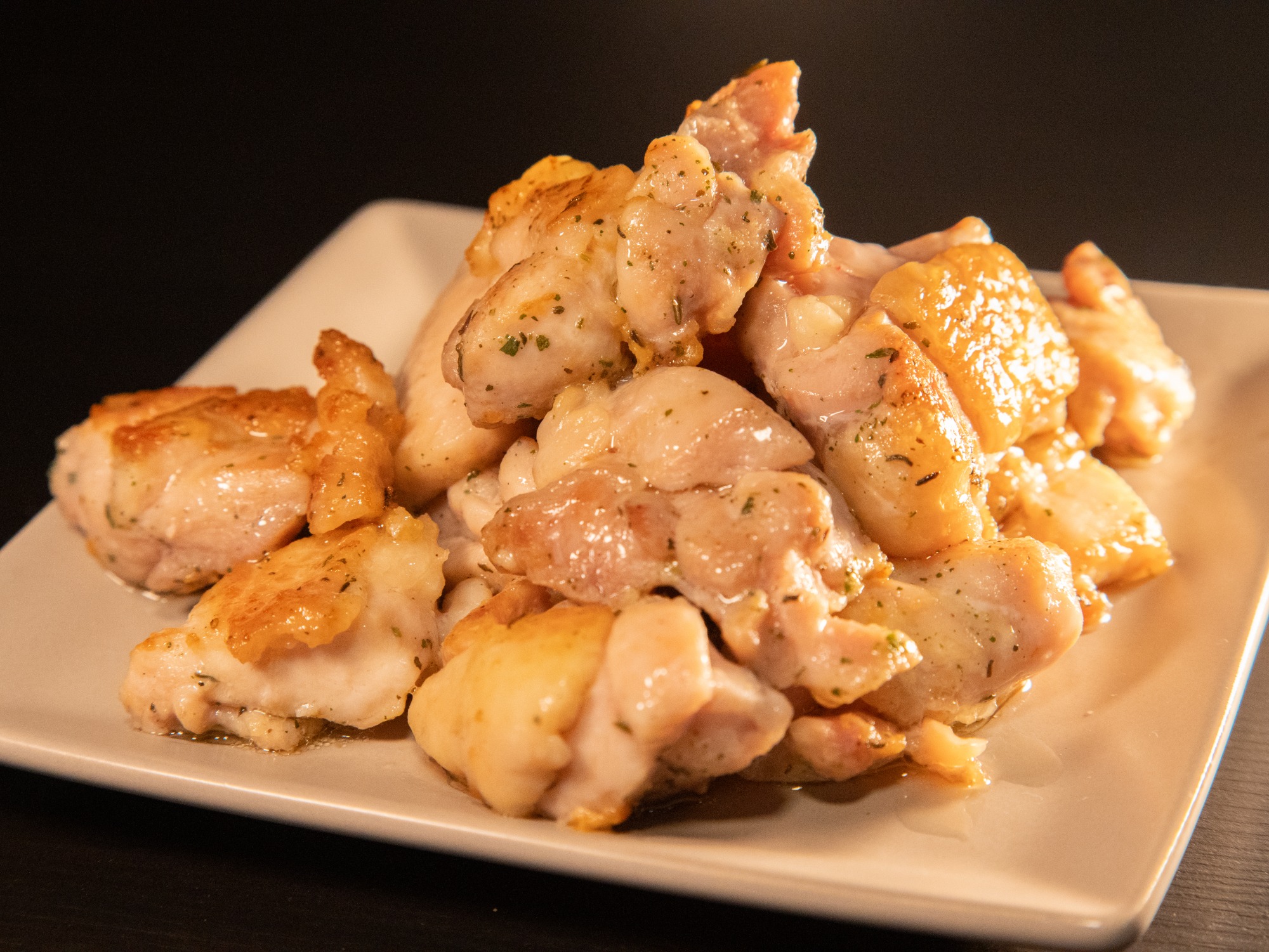 お肉との相性がバツグンとのことなので、鶏もも肉にもみ込んでシンプルに焼いてみました。