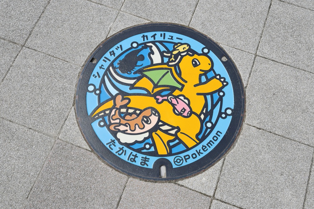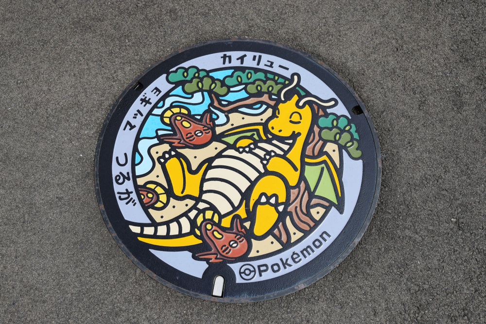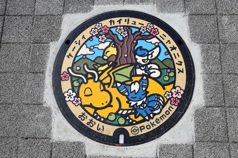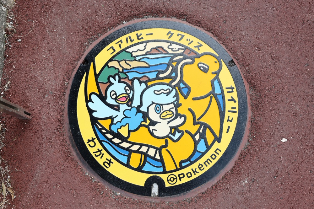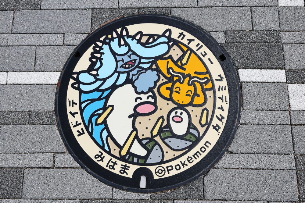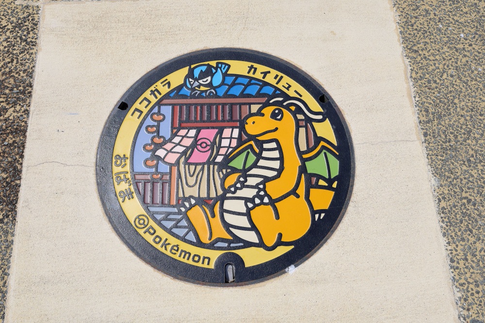 そんな恐竜王国の福井県のイメージから、ドラゴン「竜」タイプのポケモン「カイリュー」が、ふくい応援ポケモンに任命され、福井県内17市町村にカイリューと各種ポケモンと共に、県内の景勝地が書かれたポケふたが設置されました。