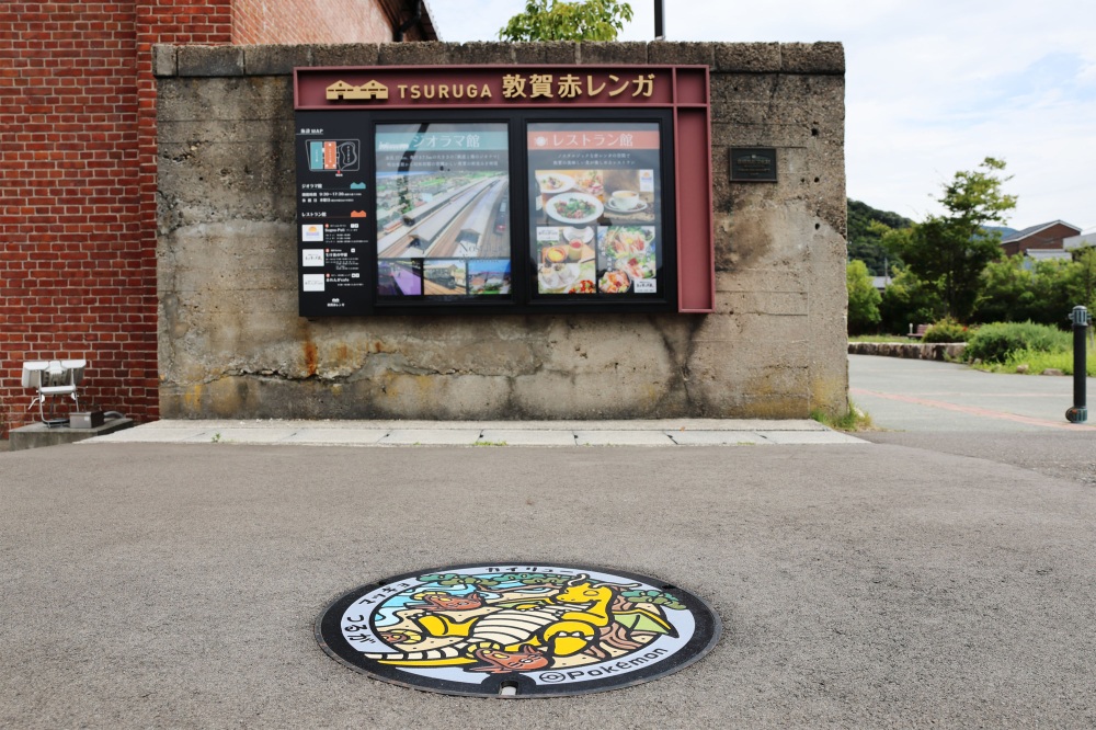 敦賀市のポケふたがあるのは、人気の観光地「敦賀赤レンガ倉庫」です。この赤レンガ倉庫は、国の登録有形文化財で、倉庫内には、明治後期から昭和初期の敦賀市を再現した巨大な鉄道ジオラマや、カフェ・レストランがあるので、ポケふた探しのついでに立ち寄ってみてください。