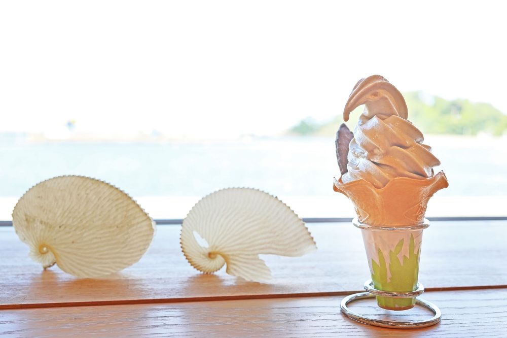 UMIKARAにあるうみから食堂の「青葉山の杜仲茶ソフト(コーン)」がおすすです。