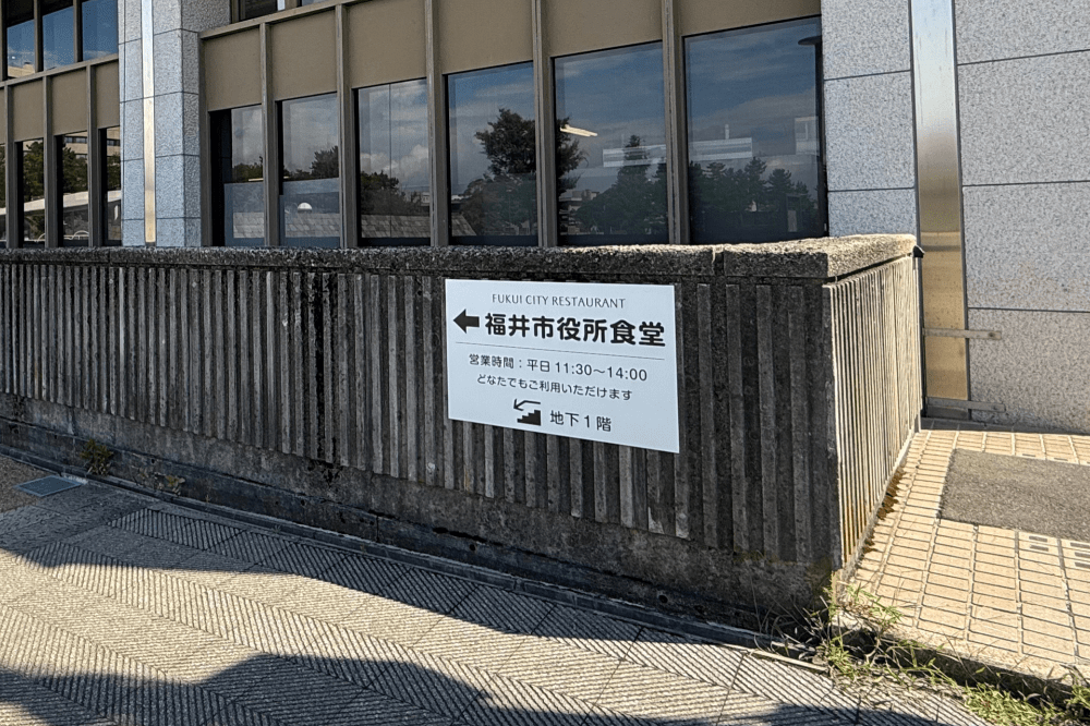 中央公園で思いっきり遊んだあとは、すぐ隣、福井市役所地下にある「市役所食堂(凸凹29ごはん)」へ。