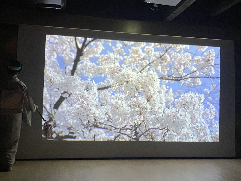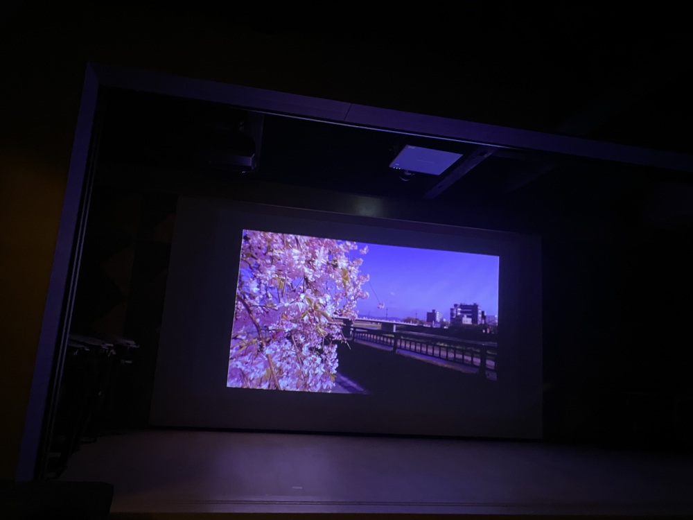 まずスクリーンから聴こえてきたのは、芸妓さんのももこさんの声。そして、桜の帯がクローズアップ。さらに、「浜町日々」からすぐ近くにある、桜百選に選ばれた福井の満開の桜並木の映像へ。文学的な映画のように映像が続きます。