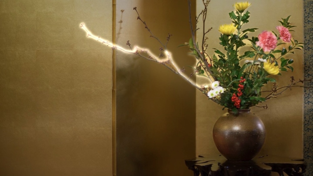 「浜町 日々」は、前代表の芸妓・ももこさんとの出会いから生まれました。着物の展示会で流れていた、伊藤さんが制作された音楽に惹かれ、伊藤さんが経営する東京・青山のスタジオを訪問したことがきっかけとなり、以来、伊藤さんが「浜町 日々」の空間づくりと音響・音楽制作に協力。6年前からは、プロジェクションマッピングの演出も加わり、他では味わえない自由で新鮮な伝統芸能の世界を形作りました。