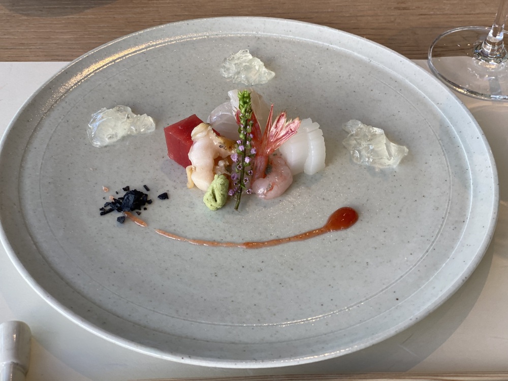 お刺身には白醤油のジュレや炭のお醤油が添えられ、ひと品ひと品が丁寧に仕上げられています。たまにはこうして、ゆったりとランチのひとときを楽しむのも良いですね。