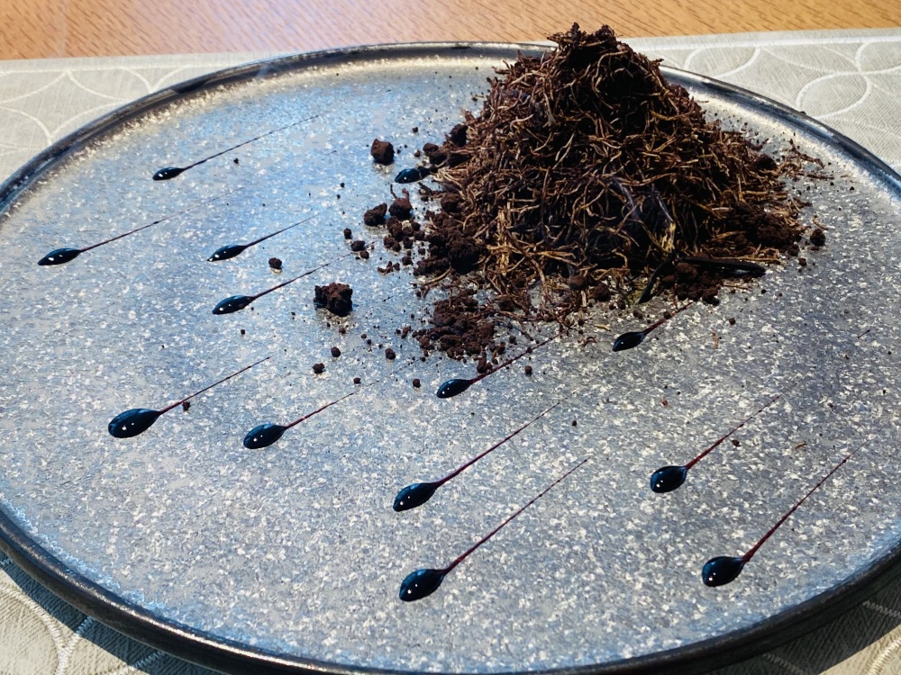 四皿目:デザート 落ち葉の山をイメージした、絵本の世界のような一皿