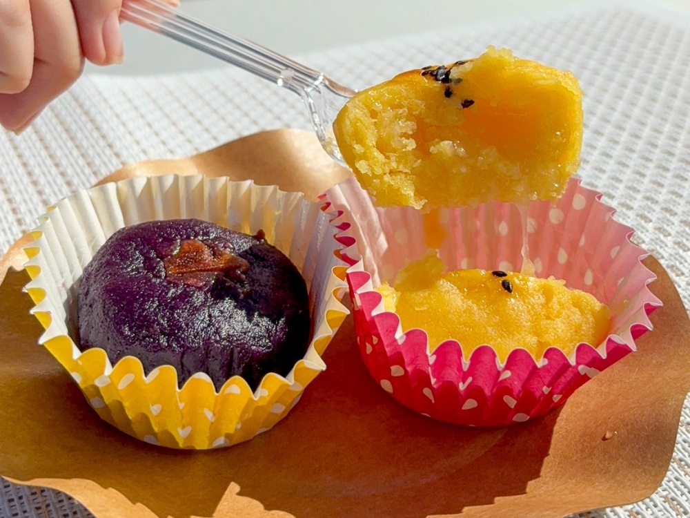 地元産のとみつ金時と、紅芋あわら紫がペースト状になっていています。
