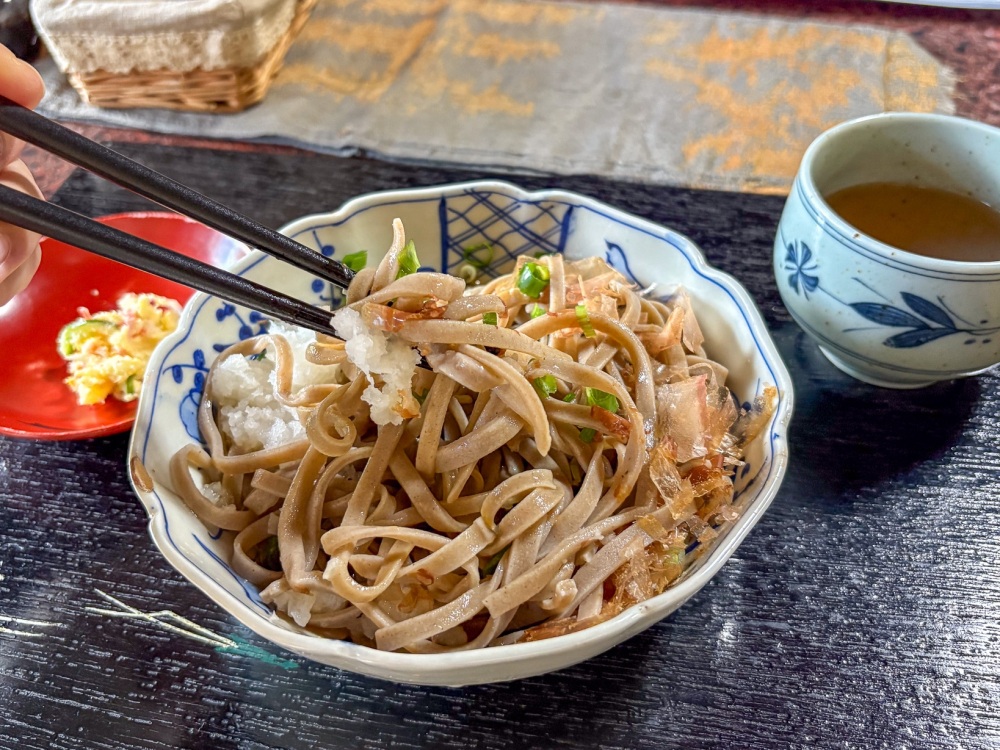 丁寧に手打ちし、辛味のある大根と鰹節、ネギをのせたシンプルな一杯は、福井の風土そのものを味わえる逸品です。
