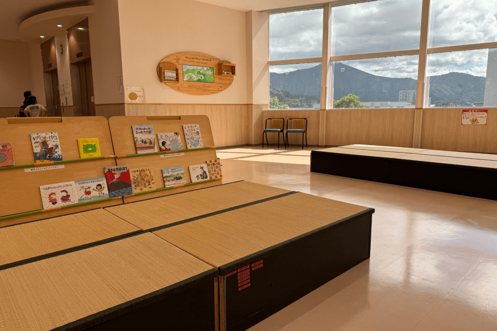 遊び場と支援センターの間にある、ちょっとした畳の休憩スペース。