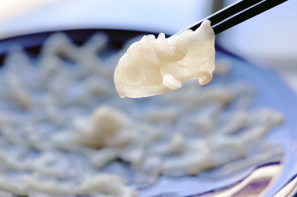 てっさにすると、透き通る身が菊の花のように美しく広がり、口に含むと心地よい歯ごたえと繊細な旨味が、てっちりでは柔らかい身の旨味と深いコクのある出汁の旨味が味わえます。 唐揚げや焼き物にすればふっくらとした身の味わいを存分に楽しむことができます。
