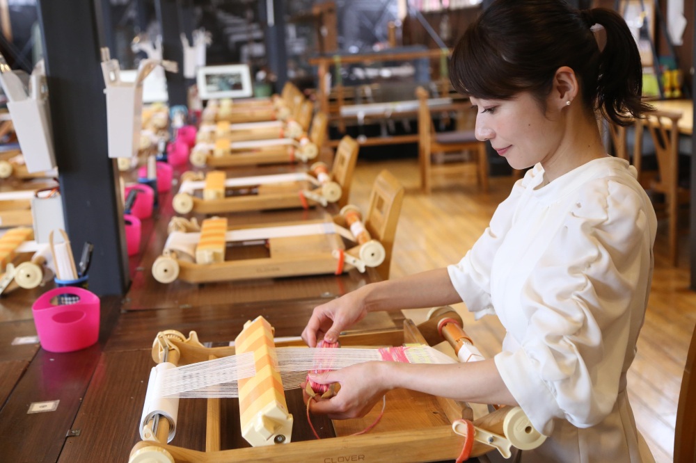 人気の「手織りコースターづくり体験(600円)」は、好みの糸を選んで、手織りの仕組みを学びながら機械に毛糸をくぐらせて約30分でオリジナルのコースターをつくることができます!広々とした体験コーナーなので団体旅行やファミリーでの体験にも最適です。