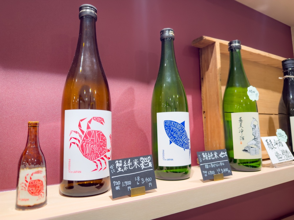 - 福井駅構内のくるふ福井「おさけとワイン みずもと」、ハピリン内のお土産店、西武地下のショップなどですね。持ち帰り易い四合瓶の取扱いも多いですし、さらに「蟹純米」は300mlがあるので、旅行でも持ち帰りやすいですよ。