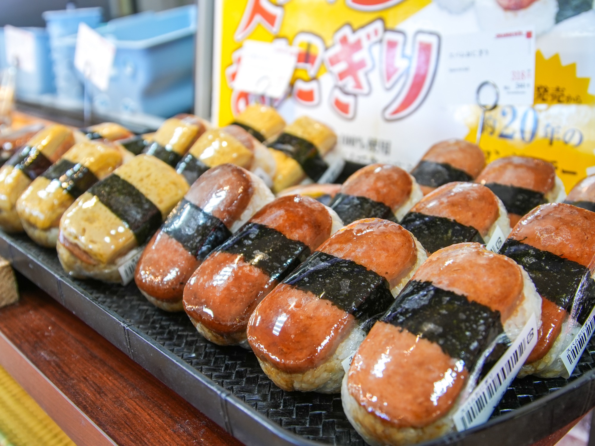 だし巻きスパム(奥)とスパムおにぎり(手前)