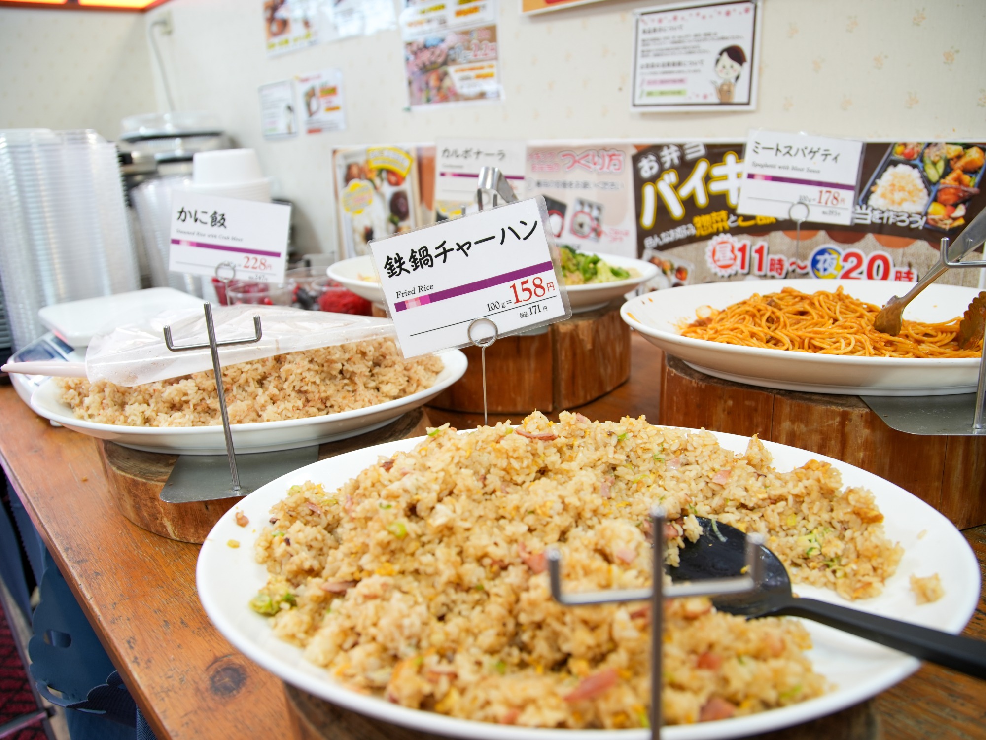 お弁当バイキングでは、ご飯もセルフで盛り、好きなおかずを乗せることができ、自分好みのオリジナル弁当を作ることができます。