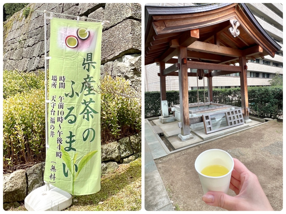 福井城創建当時からこの場所にあったと伝えられている井戸「福の井」では、 桜祭りの時期に福井県産茶のふるまいや水汲み体験が行われます。ちなみに、「福井」という地名はこの「福の井」が由来の一つだと諸説ありますが伝わっています。県産茶で桜さんぽ中の喉を潤しながら、福井の名のルーツに思いを馳せてみてください。
