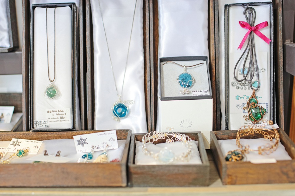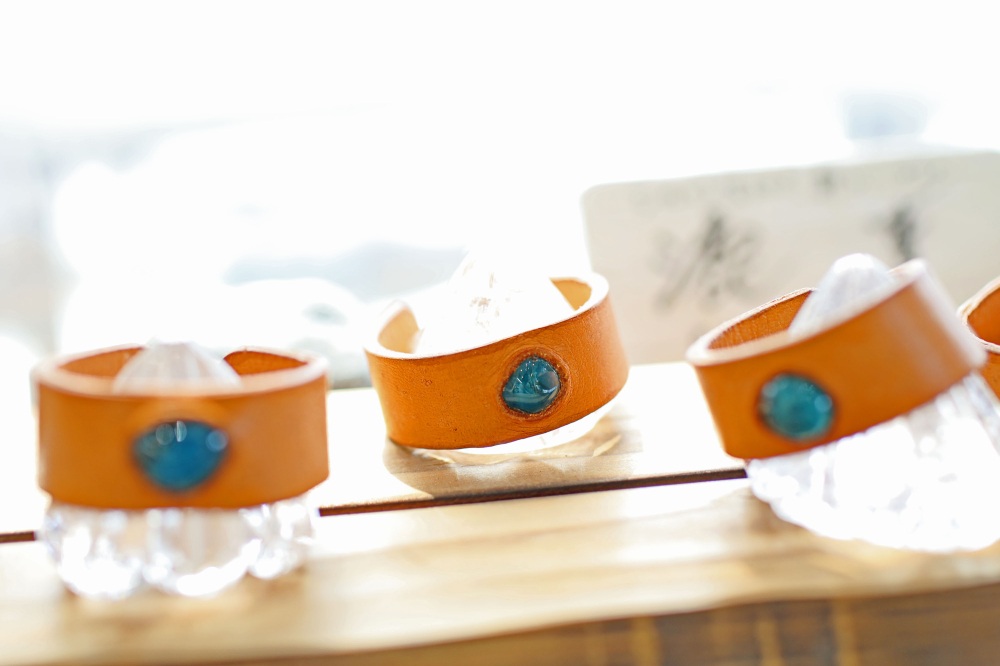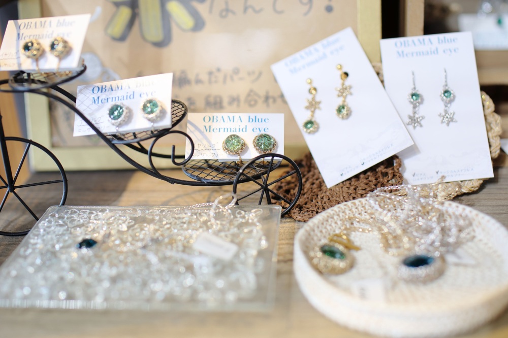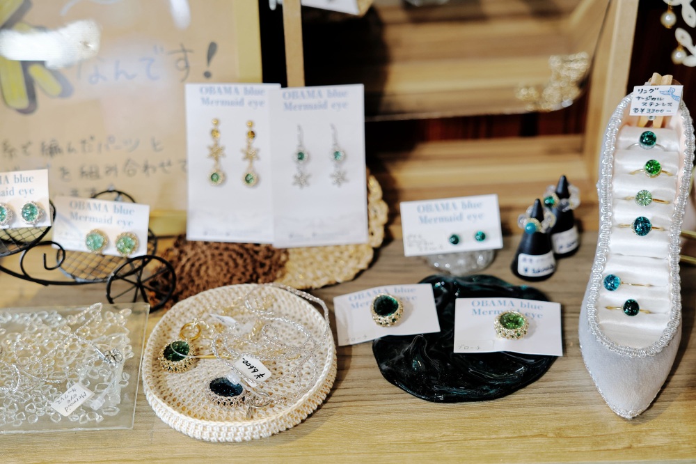 OBAMAガラスの魅力を、もっと多くの方へ届けたい。そんな竹田さんの想いから、この特別なコラボレーションは生まれました。出会ったのは、同じ土地で創作を続ける地元の作家たち。互いの感性が響き合い、ひとつひとつ丁寧に仕立てられたアクセサリーや革製品には、ガラスのやさしい輝きと、作家の息づかいが宿っています。