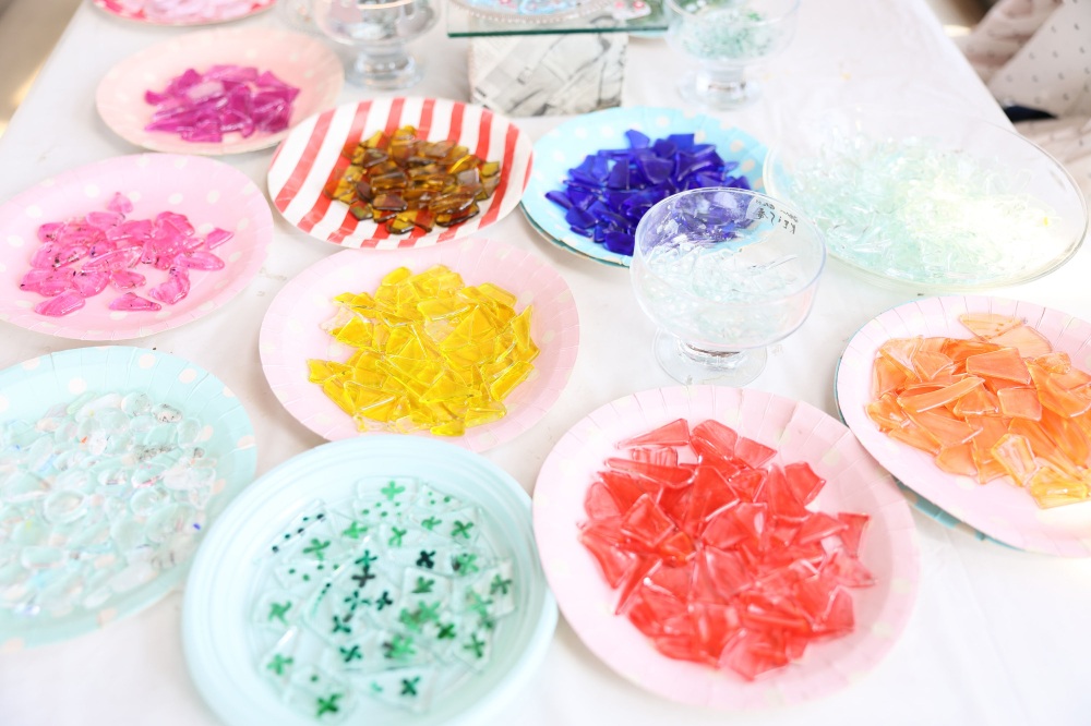- きらきらと輝く、色とりどりのガラスのかけらは、どれも可愛くて、「この色にしようかな?それともこっち?」と迷う時間も楽しいです。