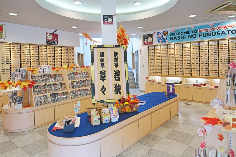 「箸のふるさと館 WAKASA」は、全国でも屈指の生産量を誇る「若狭塗り箸」の魅力を体験できる施設です。館内には色彩豊かな若狭塗り箸が並び、貴重な歴史資料の展示や制作工程の紹介、自分だけのオリジナル箸づくり体験も楽しめます。旅の思い出やお土産にもぴったりですのでぜひお立ち寄りください。