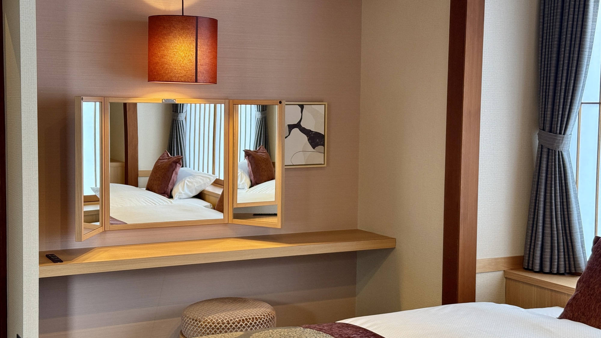 隣にはこれまた超素敵なベッドルームが構えていて、思わずお化粧したくなってしまうドレッサー付きだ。