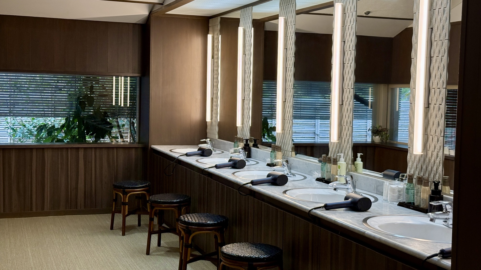 ドライヤースペースも美しくゆったりしていて、真新しいドライヤーでルンルン気分で髪を乾かすことができるのも嬉しい。