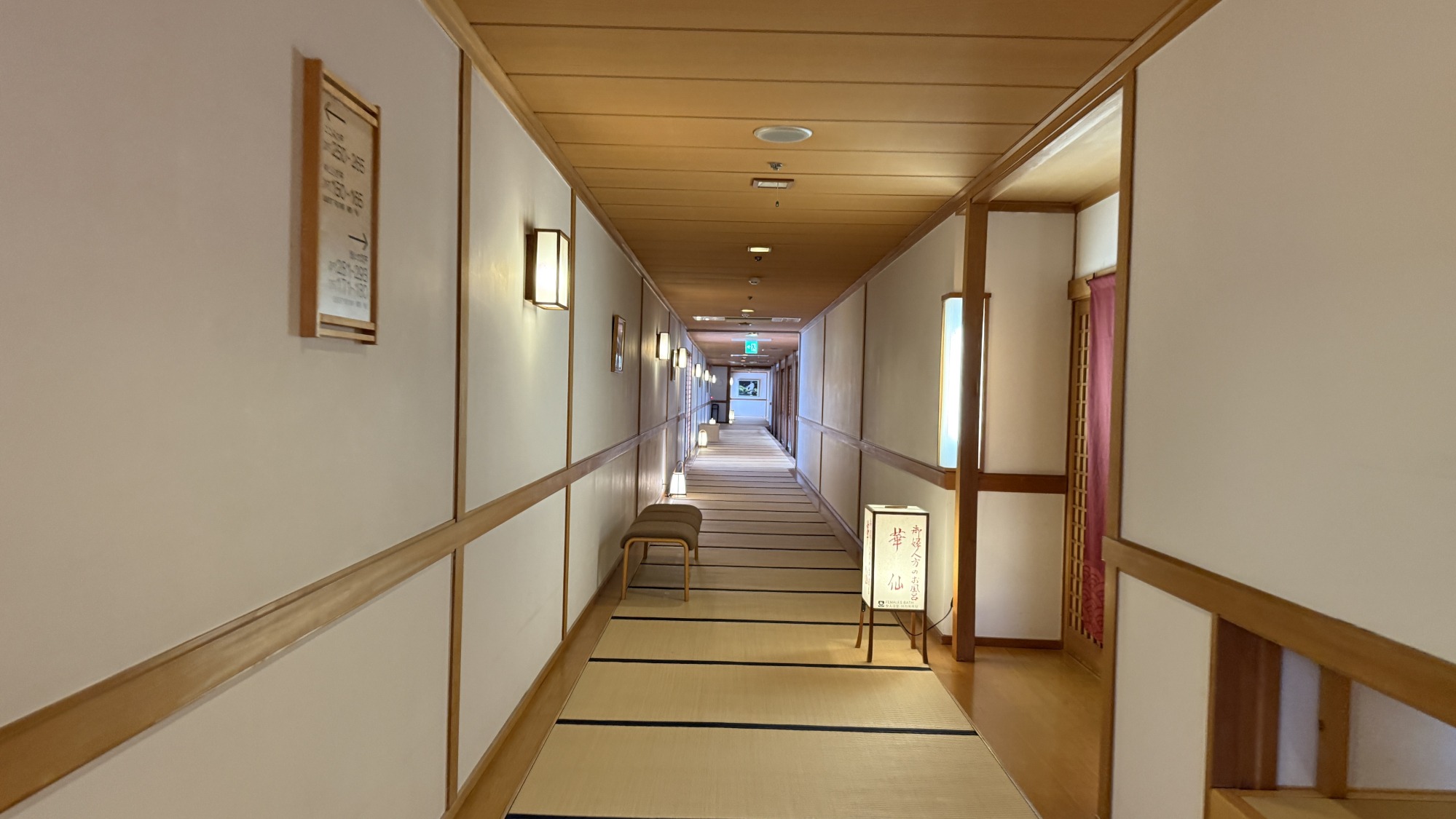 檜風呂に向かう廊下はなんと畳敷きで、これがまた特別感を沸き立たせる。