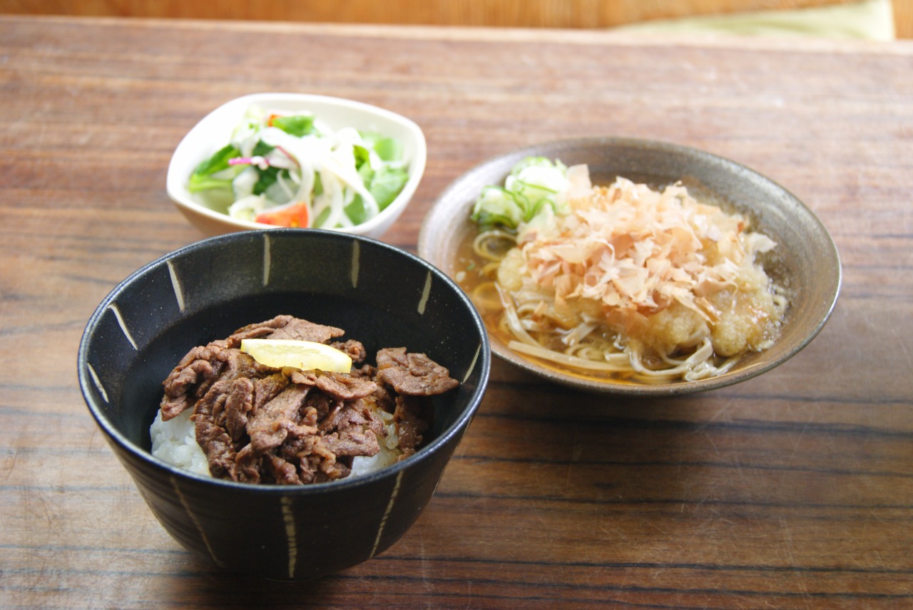 福井駅から車で10分。森に包まれた小さな茶屋で出会うごちそう時間。炊きたての福井米、越前おろしそば、名物豆腐田楽、きなこだんご、若狭牛までーーすべてが福井メイド。森の風が心地よいテラス席はペットも一緒に。夜はご予約で、若狭牛の焼肉と福井の食材を集めた宴会セットをお楽しみいただけます。