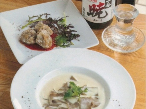 当店に来られた際は、福井の食材をその季節ごとには味わえるよう、できる限り地産地消を心がけております。イタリアンに、越前そば粉を使用したり、福井の地酒にあうお料理を提供したりしております。県外から旅行に来られたお客様も、県内のお客様もいつでも楽しいひと時をお過ごしくださいませ