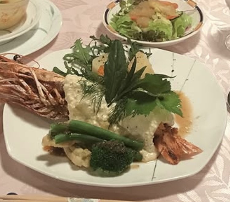 日本大使館料理人として海外勤務中に出会ったシータイガー天然海老を開店以来30年間大人気メニューとして提供しております。また、お誕生日やご記念日などのお祝い事に特製デザートをご注文いただくとキャンドルサービスやピアノ生演奏で華やかな雰囲気を演出いたします。