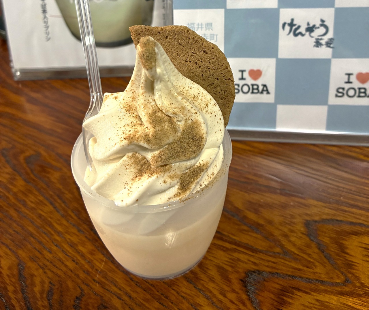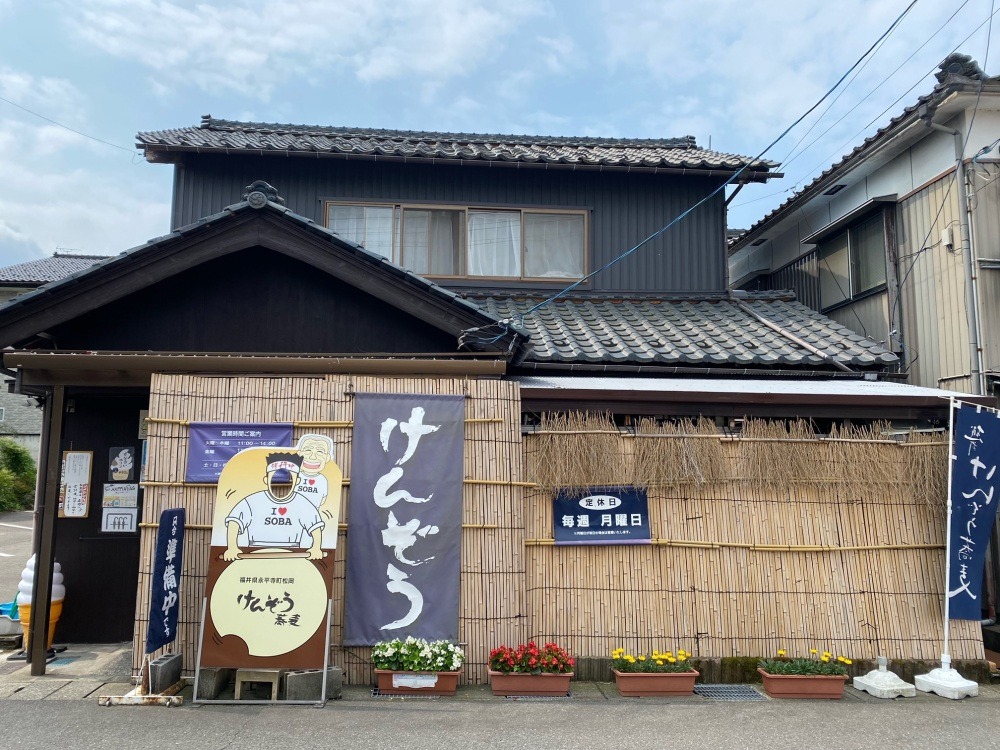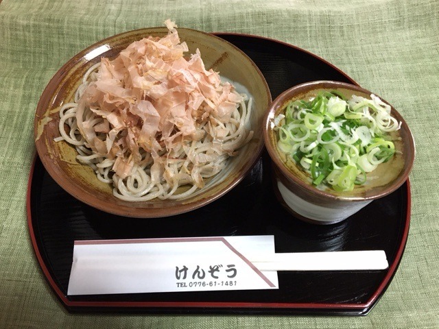 手打ち十割蕎麦の旨みと風味を堪能できる人気店。福井県産と北海道産の上質な蕎麦粉をブレンドした、つるりとした細麺が特徴。挽き方、打ち方の違いで十割でも不思議なほど滑らかでさらっとした口当たりです。メニューは、蕎麦本来の甘みを感じられる「おろしそば」、辛味大根と生醤油の特製つゆにつける「けんぞうそば」があります。両方を味わえる「五合そば」「十合そば」もおすすめ。食後には、ソフトクリーム、プリンといったそば茶のデザートを。