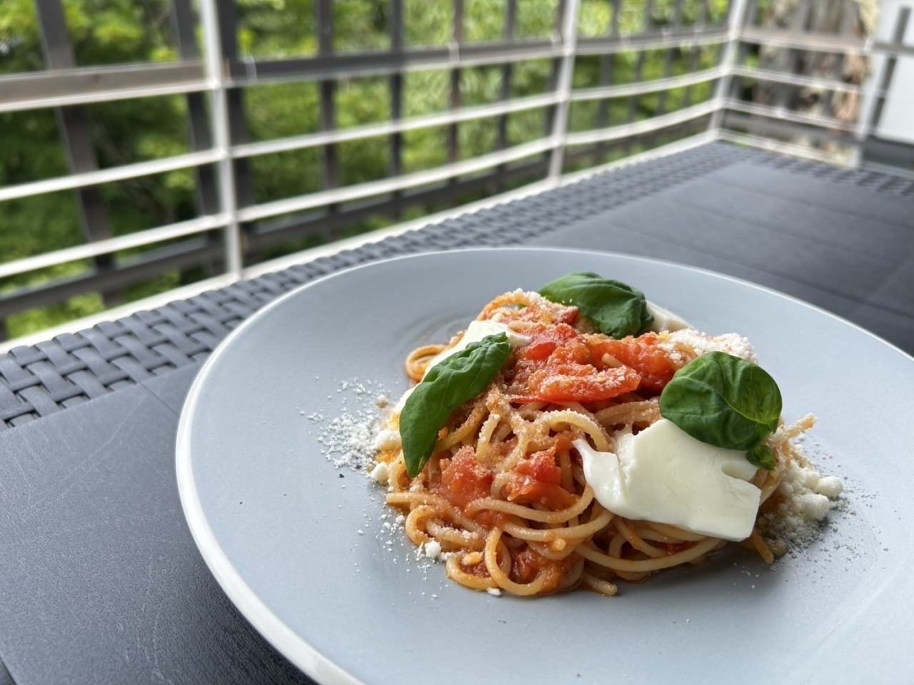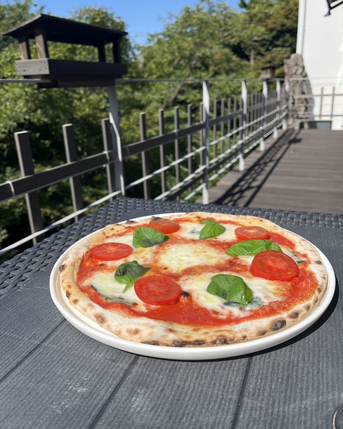 季節ごとに変化する美しい自然に囲まれた空間で、贅沢なひとときを過ごしていただくことをテーマにしたカフェ。山の豊かさを五感で感じながら、当店自慢の石窯で焼いた本格ナポリピザや、こだわりぬいたコーヒーやスイーツをお楽しみください。越のルビーを使ったアマトリチャーナやマルゲリータ(期間限定)の他、ふわふわ食感の「福井県産ハチミツのバタースフレ」や、期間限定のスイーツもご用意しています。
