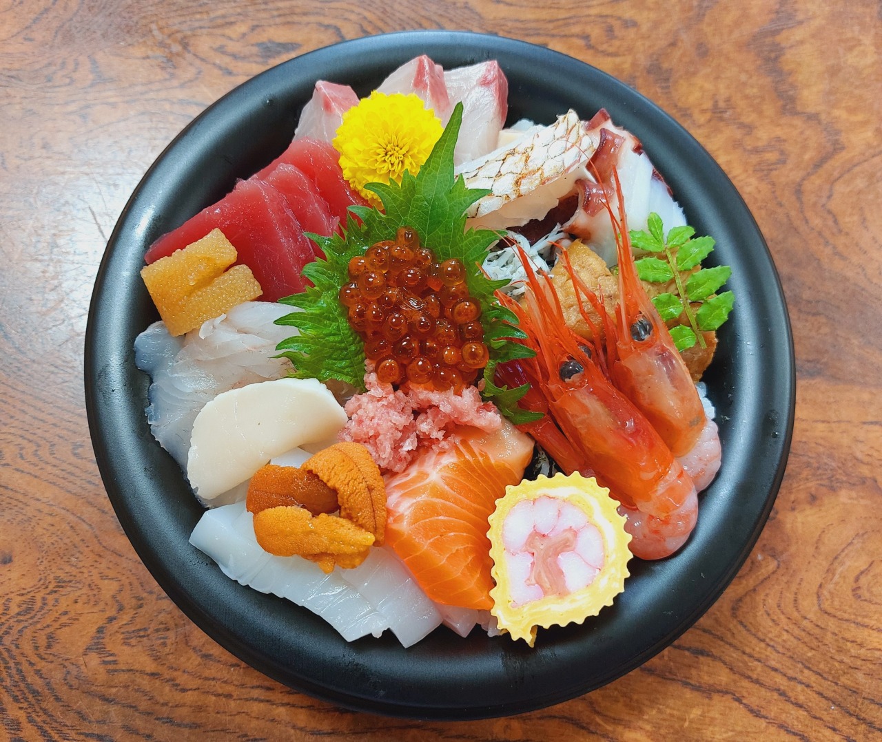 海鮮丼、お寿司を中心に人気です。魚、野菜、お米など、地元の旬の食材を使った料理を提供致します。『食で笑顔を作りたい』をモットーに営業しています♬