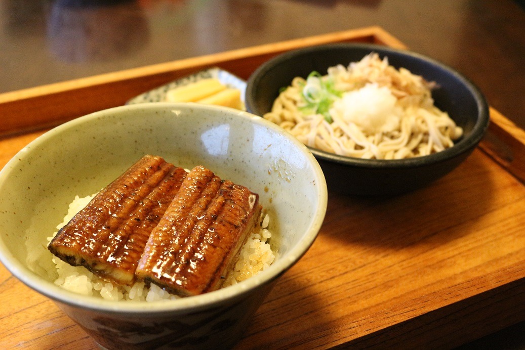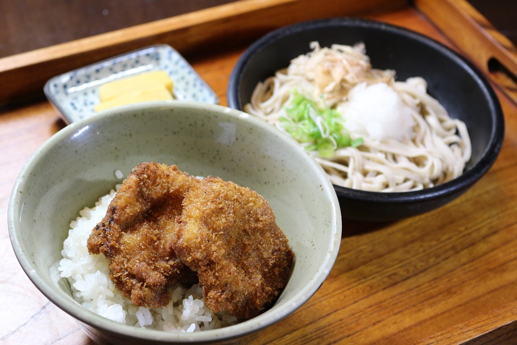 日本三大松原の一つ「気比の松原」に隣接する敦賀港のたもとで、創業昭和6年から続く老舗の蕎麦屋です。毎朝、その日使う分だけのカツオを削り、ざる用とかけ用の2種類の出汁を作ります。特にざる用の出汁は、かけ用の出汁に別の種類のカツオで取った出汁を合わせて作ったこだわりの味。麺はすべて自家打ち製麺です。是非ご賞味ください。