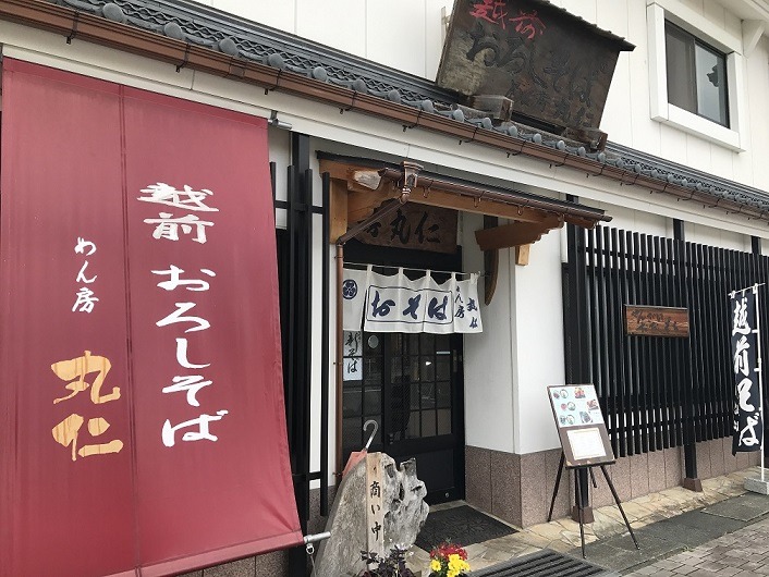 老舗蕎麦屋「めん房 丸仁」の神楽店。氣比神宮から続く通りに位置しています。毎朝、その日使う分だけのカツオを削り、ざる用とかけ用の2種類の出汁を作ります。特にざる用の出汁は、かけ用の出汁に別の種類のカツオで取った出汁を合わせて作ったこだわりの味。麺はすべて自家打ち製麺です。是非ご賞味ください。