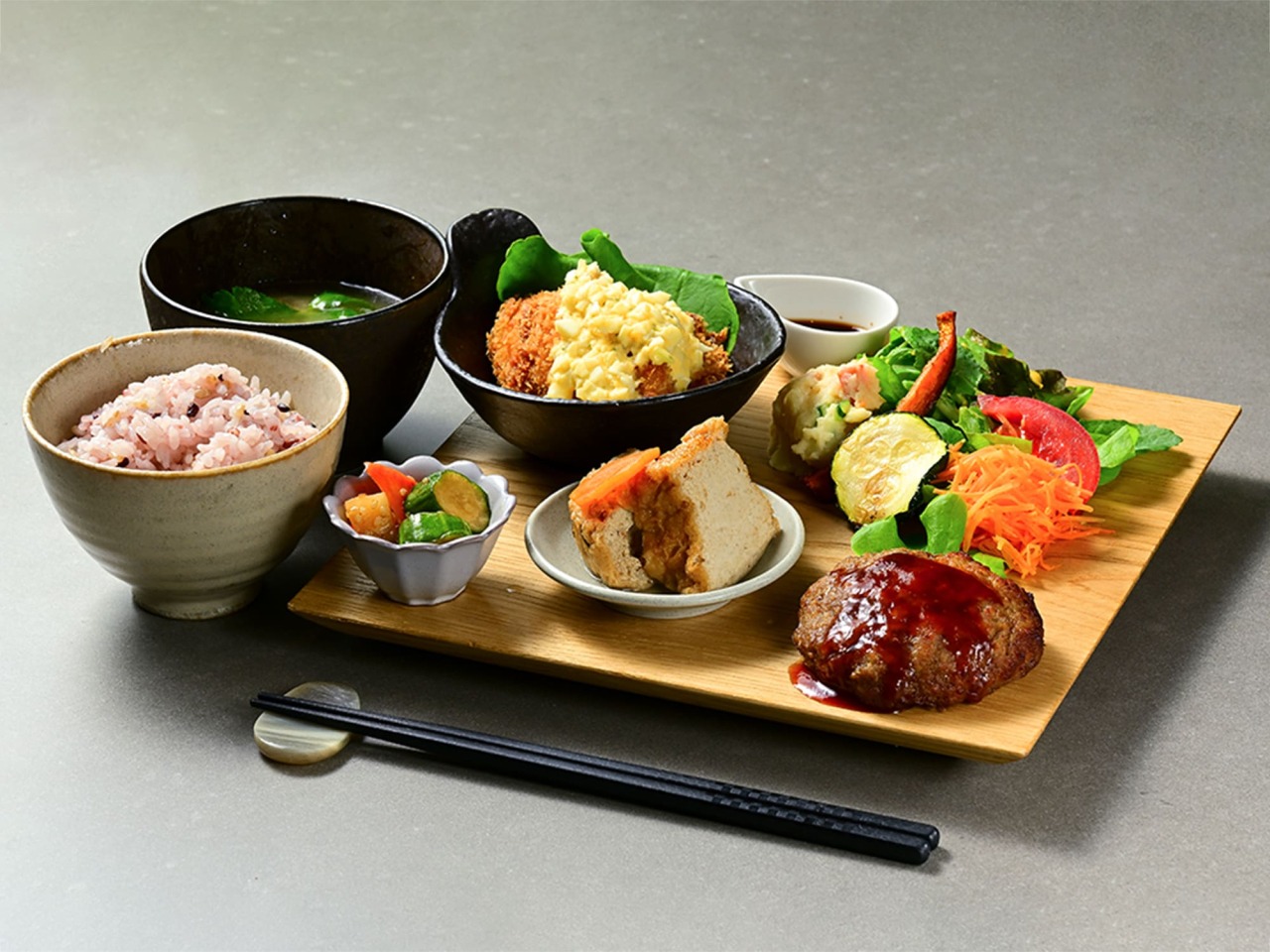 海辺の旅館「かつみや」が営むカフェです。シックで落ち着いた雰囲気の中で、海を眺めながら、ゆったりとランチやカフェが楽しめます。ランチでは、地元の食材をたっぷり使った「おばんざいプレート」を日替わりで提供しています。メインは魚か肉かお好みで。地元のへしこやあら汁もセットになっています。カフェメニューは、米粉のガトーショコラやチーズケーキといった手作りケーキやかき氷をご用意しています。