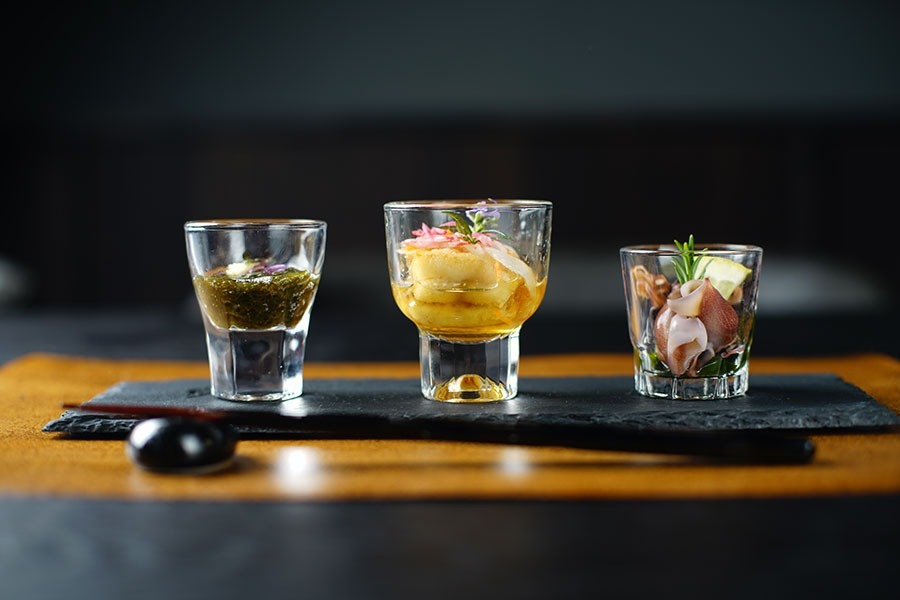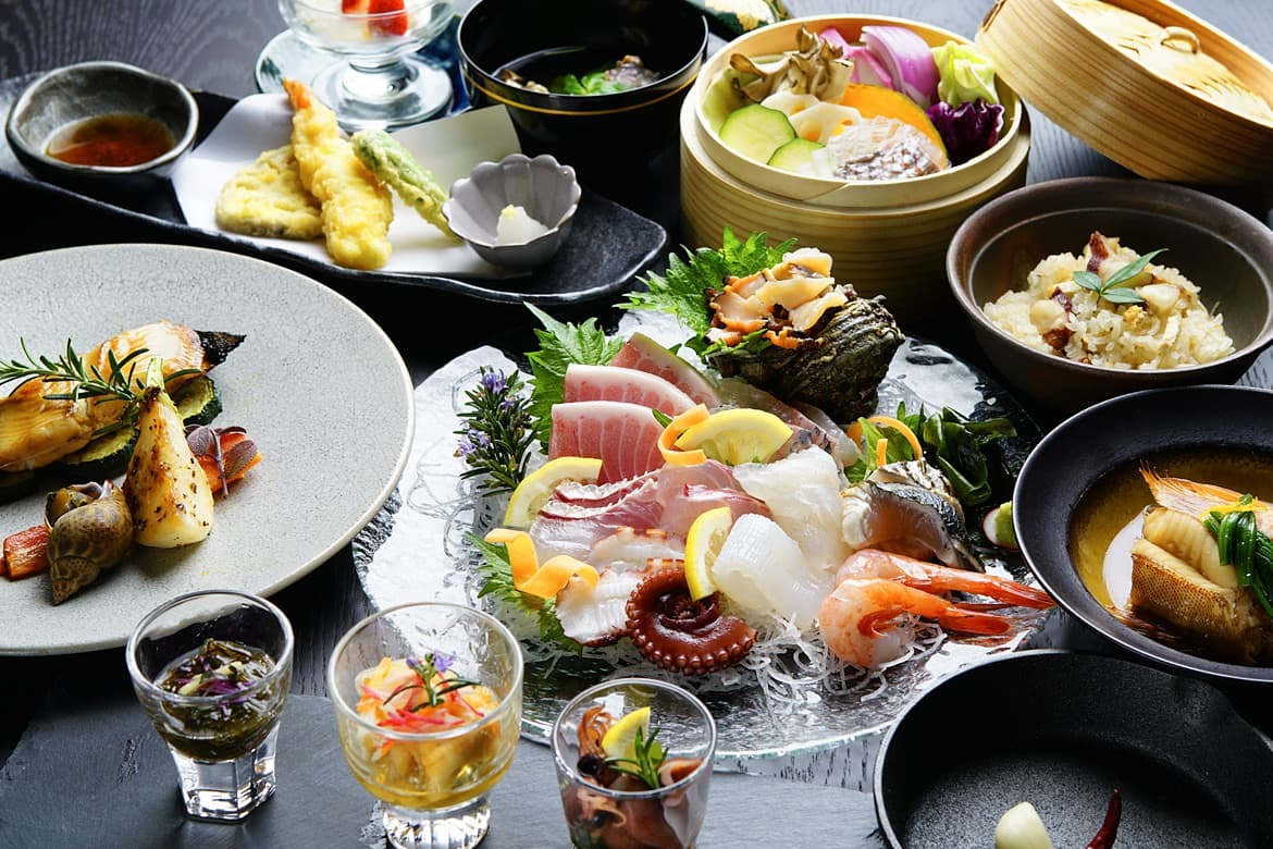 人里離れた、福井県敦賀半島の裏に佇む旅館「かつみや」です。シックで落ち着いた雰囲気の建物で、大人の非日常を感じながら、心からくつろいでいただける空間をご用意しています。敦賀半島の新鮮な海の幸と美浜の恵みが織りなす料理は、その季節だけの特別な出会い。素材の美味しさを引き出す味わいが、心を豊かにしてくれます。日常を忘れて、静かな空間で心ゆくまで寛ぎながら旬の海の幸を楽しむ、そんな特別なひとときをお過ごしください。近くの水晶浜は、結婚式の前撮りなど撮影スポットとして人気。そういったゲストがヘアメイクや着替えができるプライズルームを備えた部屋や、自転車が持ち込めて簡単な整備ができるサイクリスト向けの部屋もご用意しています。