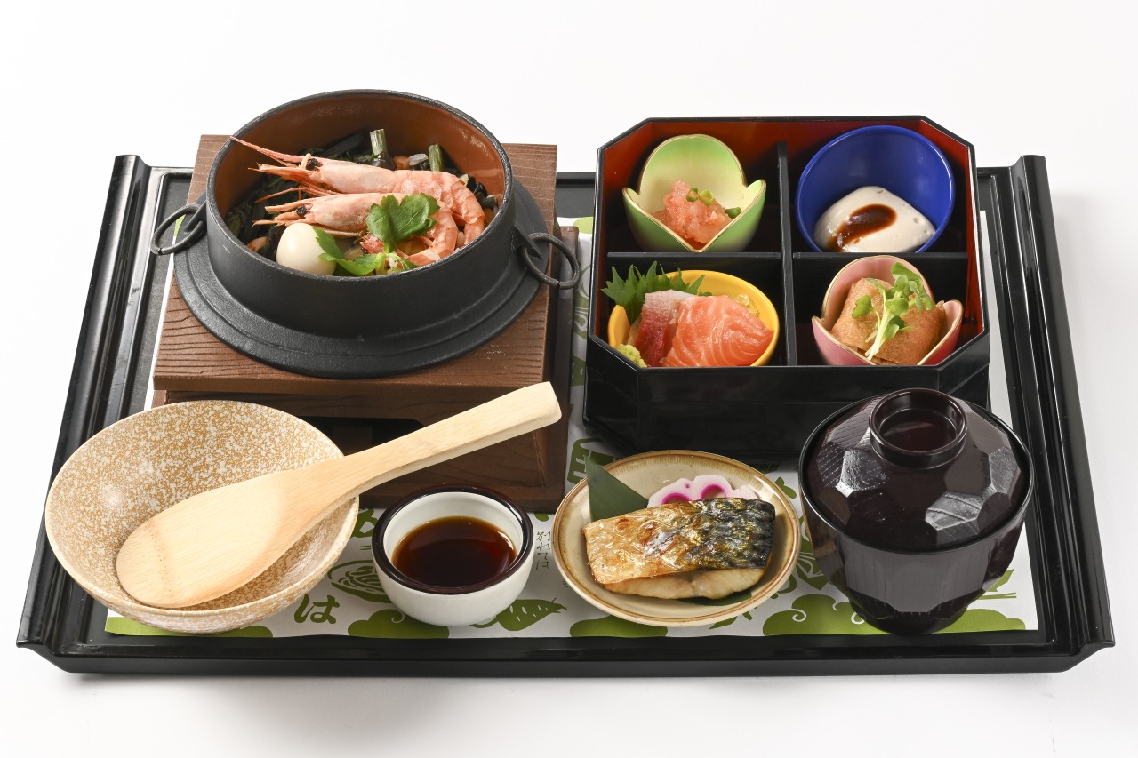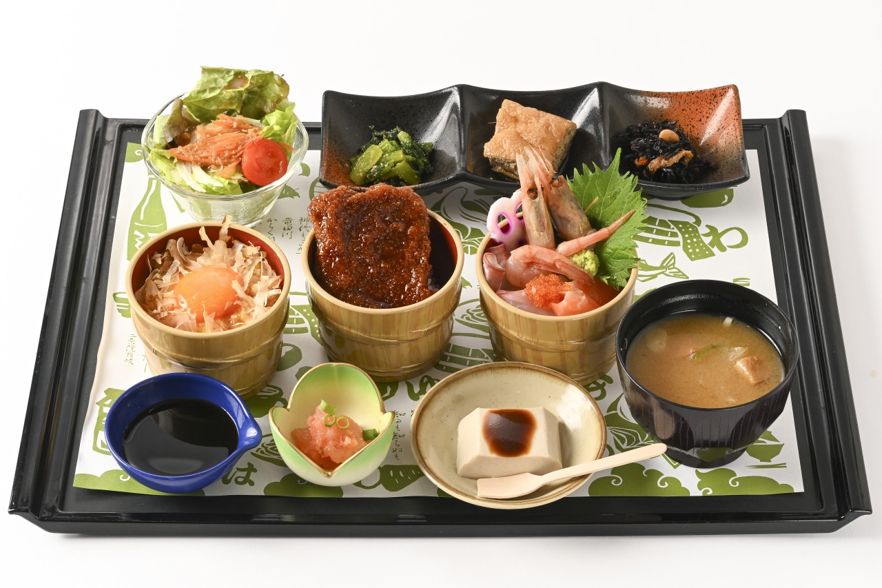 蕎麦のほか、地元産の甘えびを使用した丼、海の幸を使った海鮮丼や釜めし、若狭牛のカレー、ソースかつ丼、とみつ金時を使ったスイーツもご用意しています。