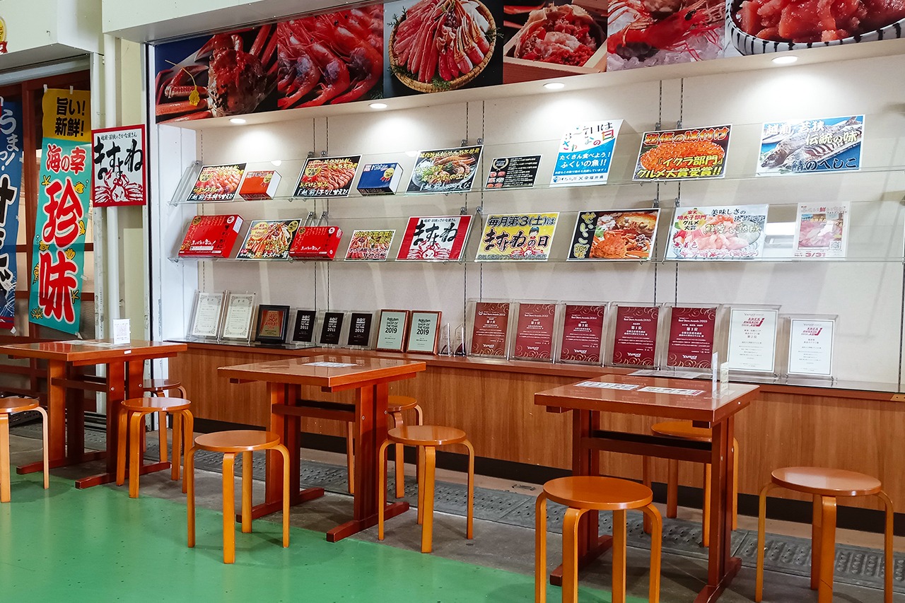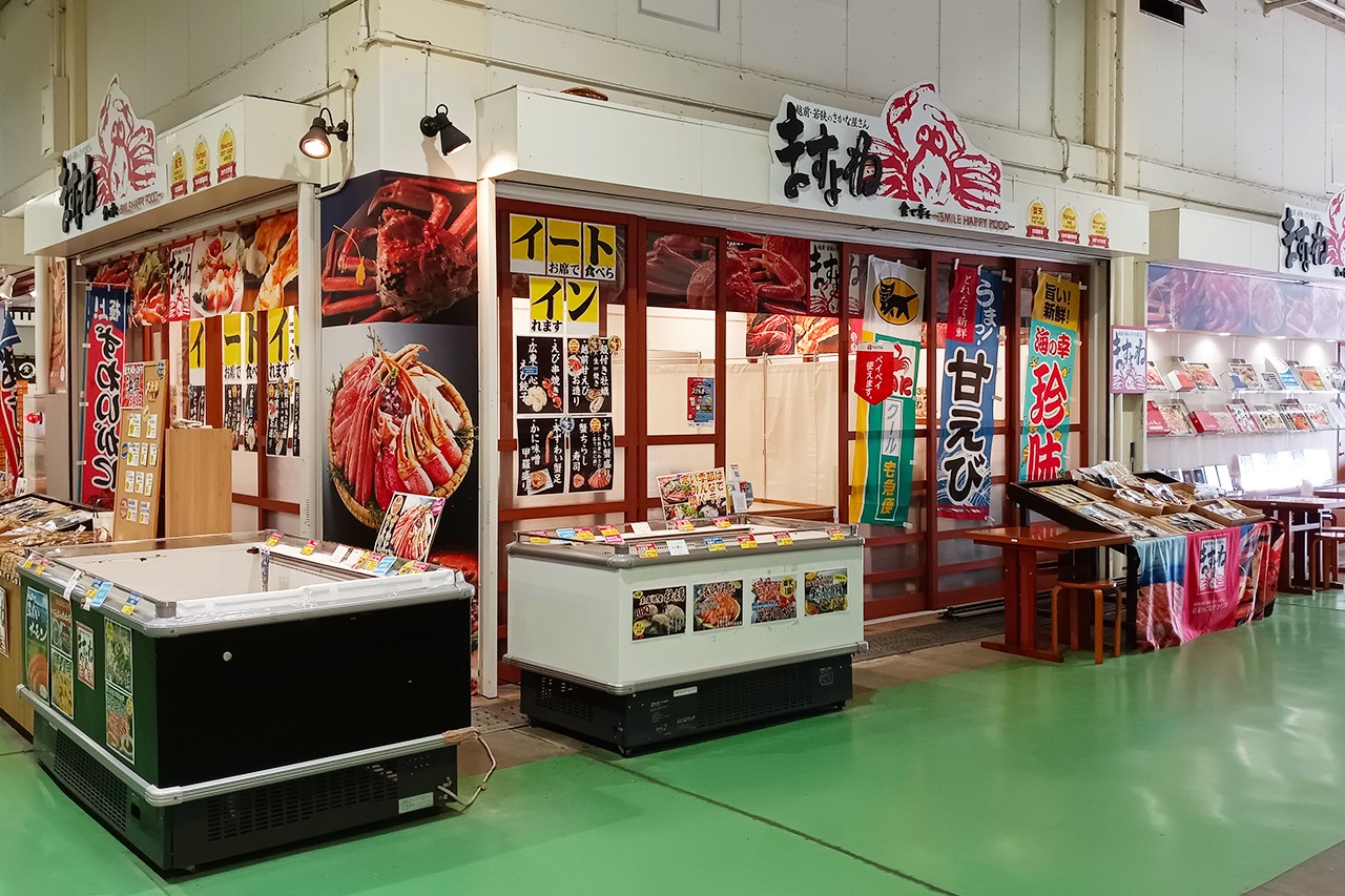 福井市中央卸売市場のふくい鮮いちばで、ますよねオリジナル海産物や福井の名産物を販売しております。即売はもちろん、通販にも対応。蟹、牡蠣、越前甘えびなどをその場で食べられるイートインコーナーもご用意しております。