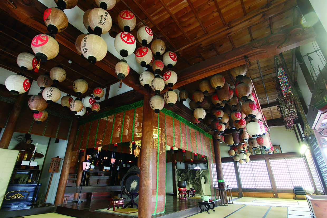 大日如来を本尊に祭っており、越前市で唯一の臨済宗大徳寺派の寺です。すぐそばを川が流れ、古くはこの川で身を清めてからお参りをしたことから、河濯と呼ばれるようになりました。通称「かわっさん」と呼ばれ、安産・病気快癒にご利益があるといわれ、お参りの人が絶えません。お堂には、お札に奉納された古い絵馬や提灯がたくさん掛けられています。境内には俳聖松尾芭蕉の色紙塚(句碑)があります。句碑としては県内最古のものです。