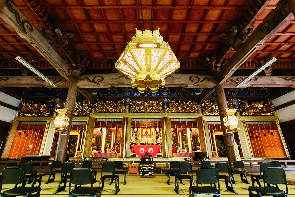 御影堂は20間4面の大伽藍を誇り、阿弥陀堂門にある葵の紋や鯉の滝登りの一枚彫り彫刻は必見です。