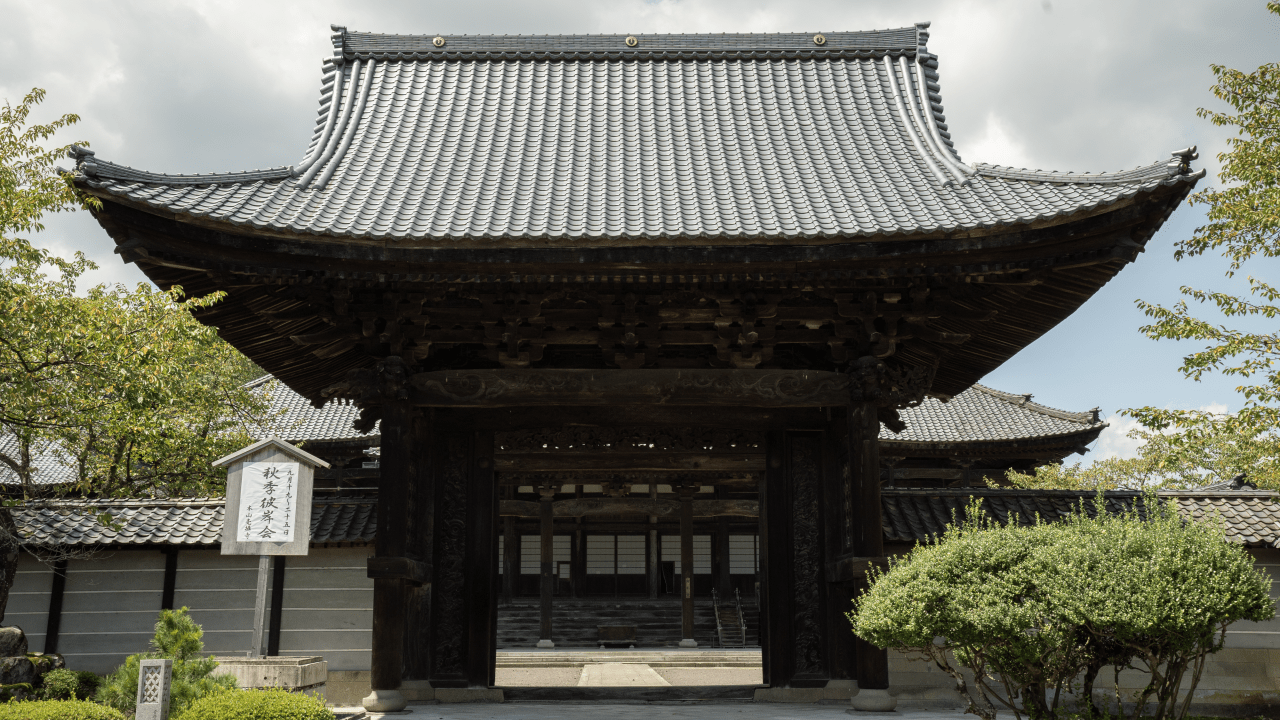 けやき造り赤瓦山門が荘厳な雰囲気を伝える毫攝寺は、真宗出雲路派の本山です。
