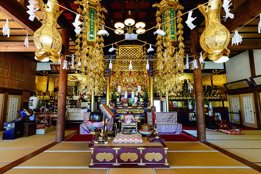 大永5年(1525)創建。趣ある寺町通り沿いのこの地は、かつて府中城の西側防衛を目的に天台法華系の寺院が五ヶ寺連なる、都市計画上の防衛防災地帯だった(現在は三ヶ寺)