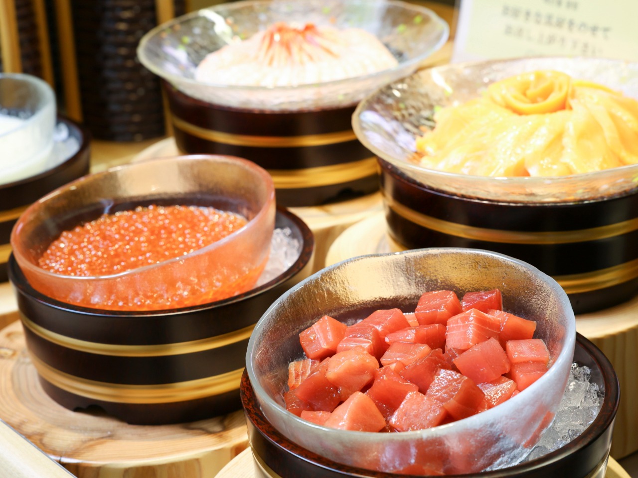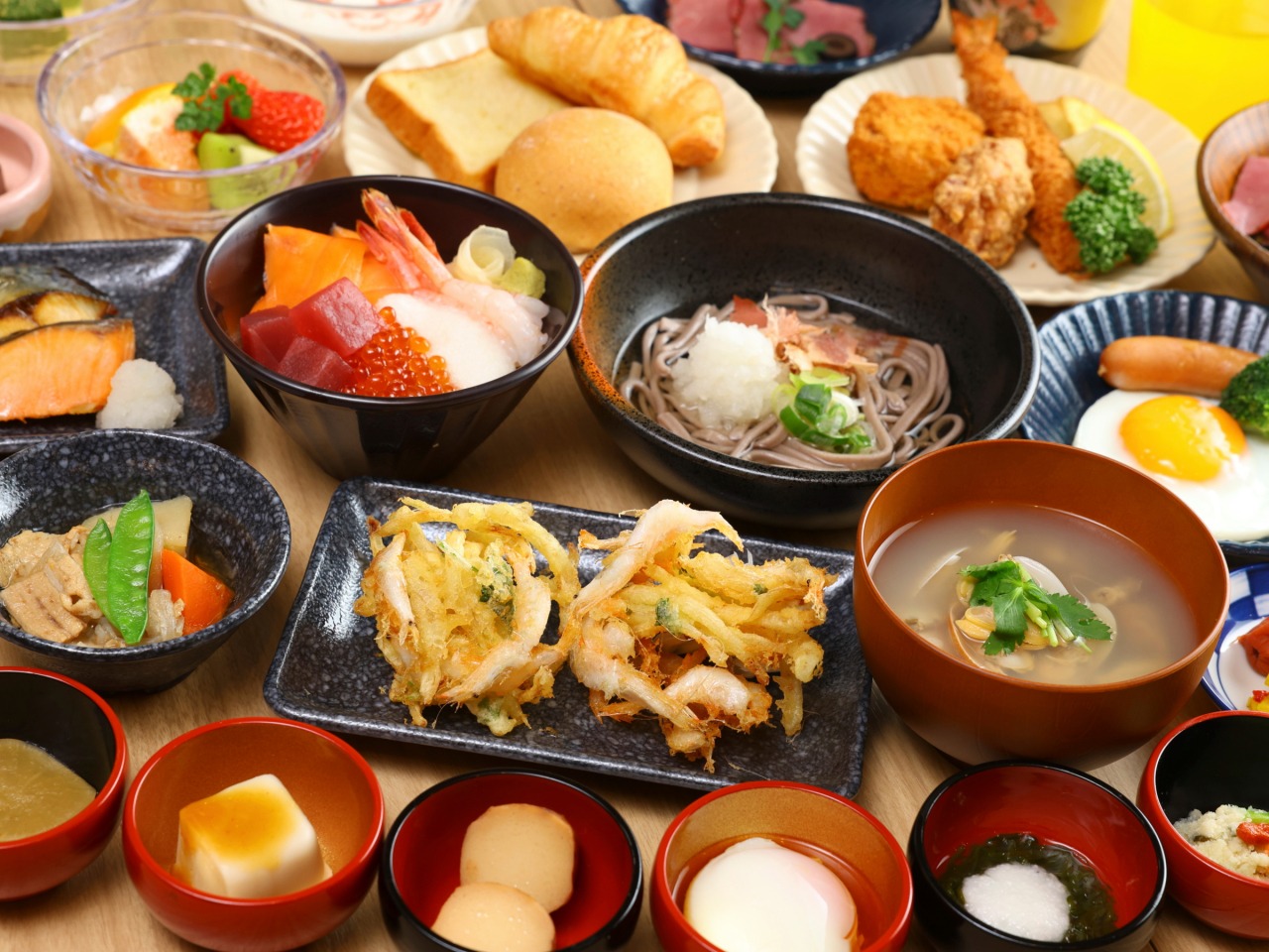 朝食は約50品目の和洋食バイキングと小鉢横丁に加え「ご当地逸品料理」を提供しております。