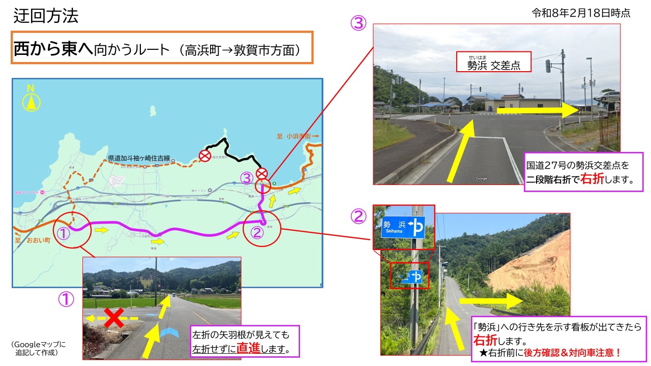 ※迂回路を含む小浜市街~おおい町うみんぴあエリアまでの約15kmの区間は補給箇所がありませんのでご注意ください。