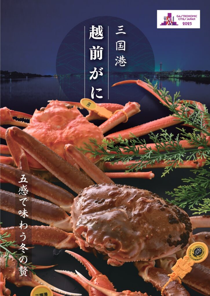「三国港越前がに」パンフレットをリニューアルしました! 2025.09.17 市町から 坂井市 (一社)DMOさかい観光局では、「三国港越前がに」パンフレットをリニューアルいたしました。三国港で水揚げされる越前がにの魅力をたっぷりと紹介した一冊となっております。ぜひご覧ください。 「三国湊越前がに」パンフレットはこちら
