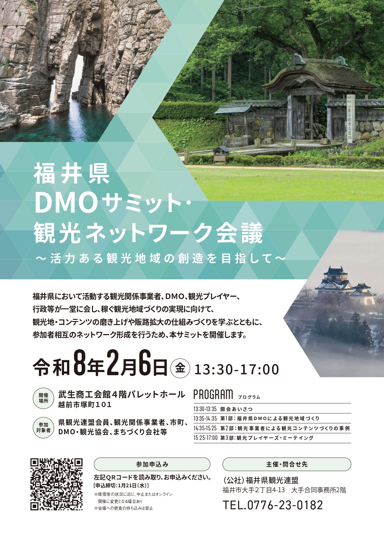 【福井県DMOサミット・観光ネットワーク会議】の参加者を募集します