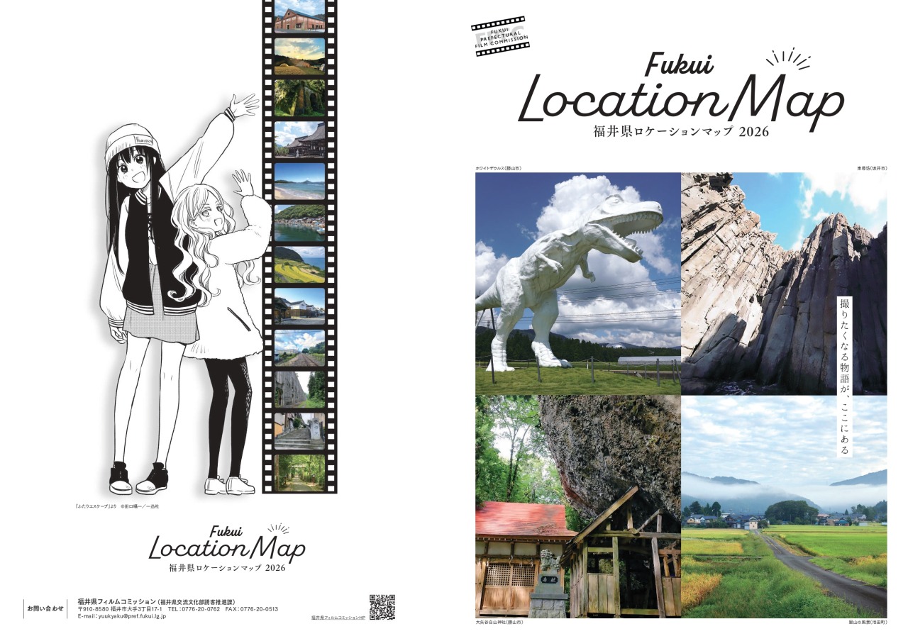 福井県フィルムコミッションでは、本県の魅力発信と映像作品のロケ誘致を目的に、県内のロケ地や作品舞台を紹介する「福井県ロケーションマップ2026」を作成しました