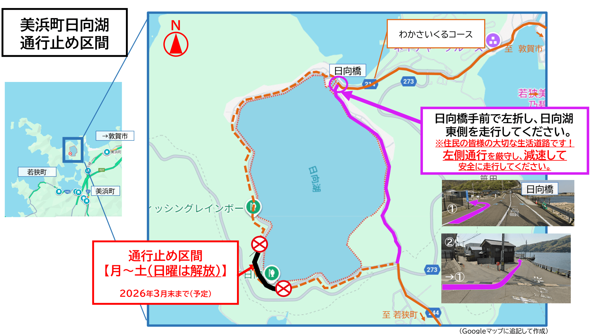 ※小浜市一番町~雲浜1丁目の部分は、迂回ルートを通る経路となっています。
