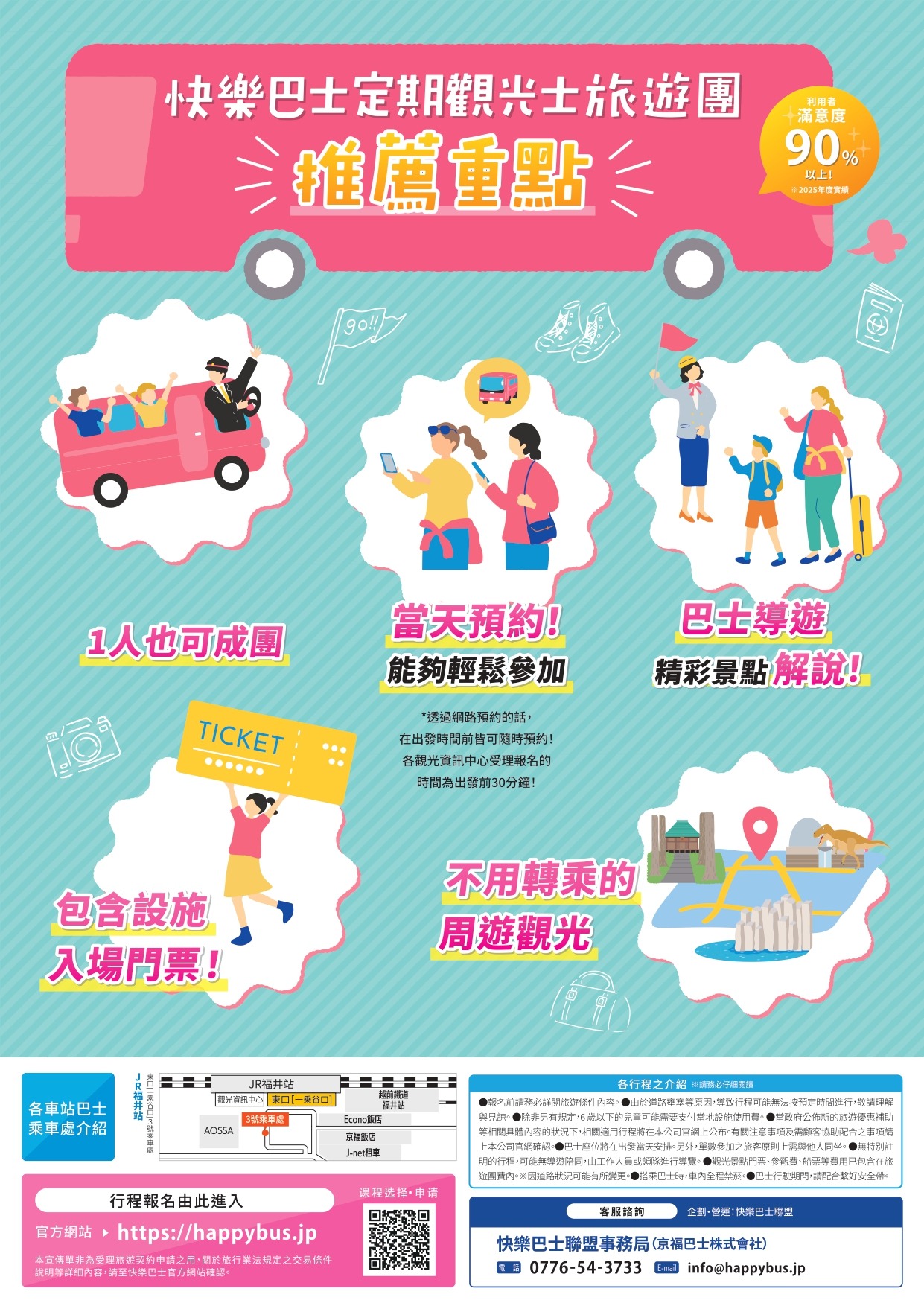- 0776-54-3733(京福巴士 週一至週五 上午9:00至下午5:00)