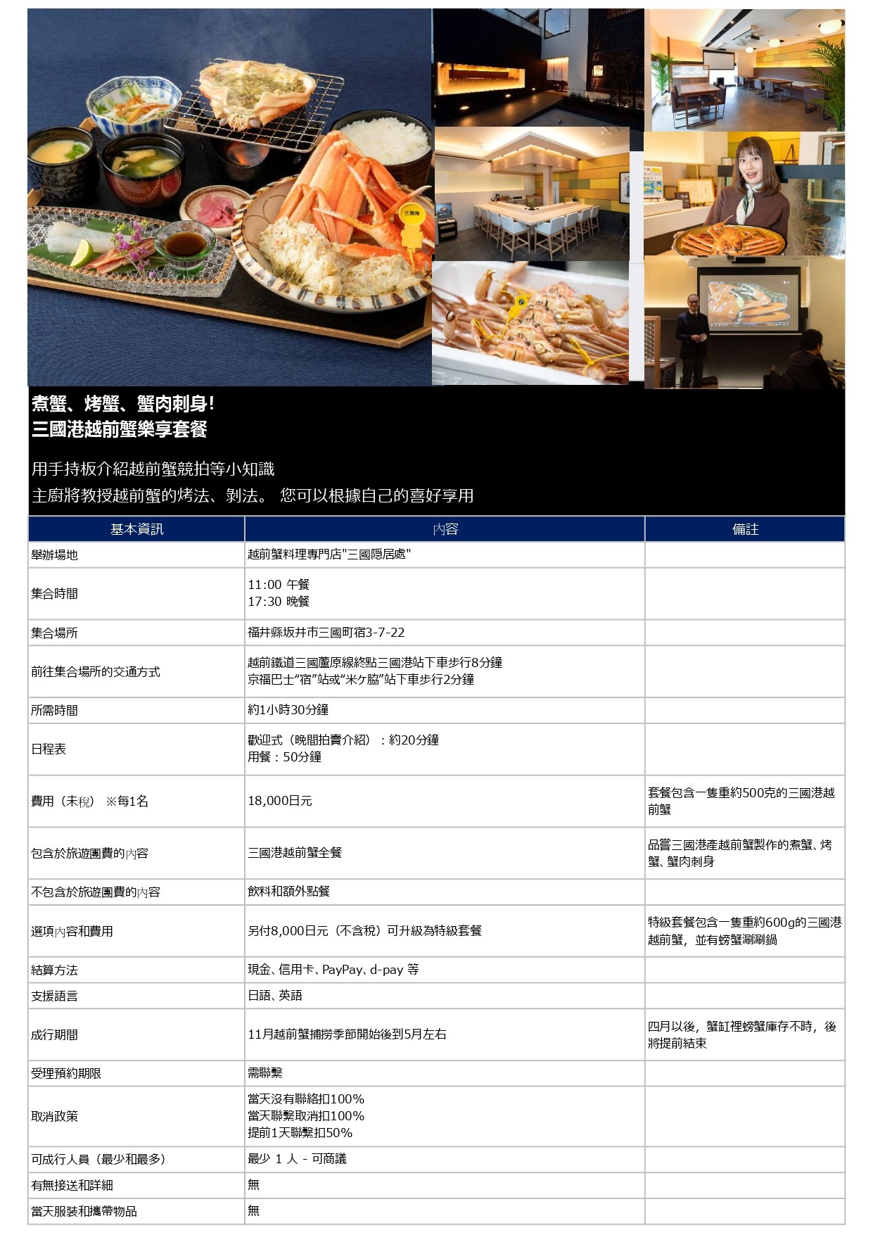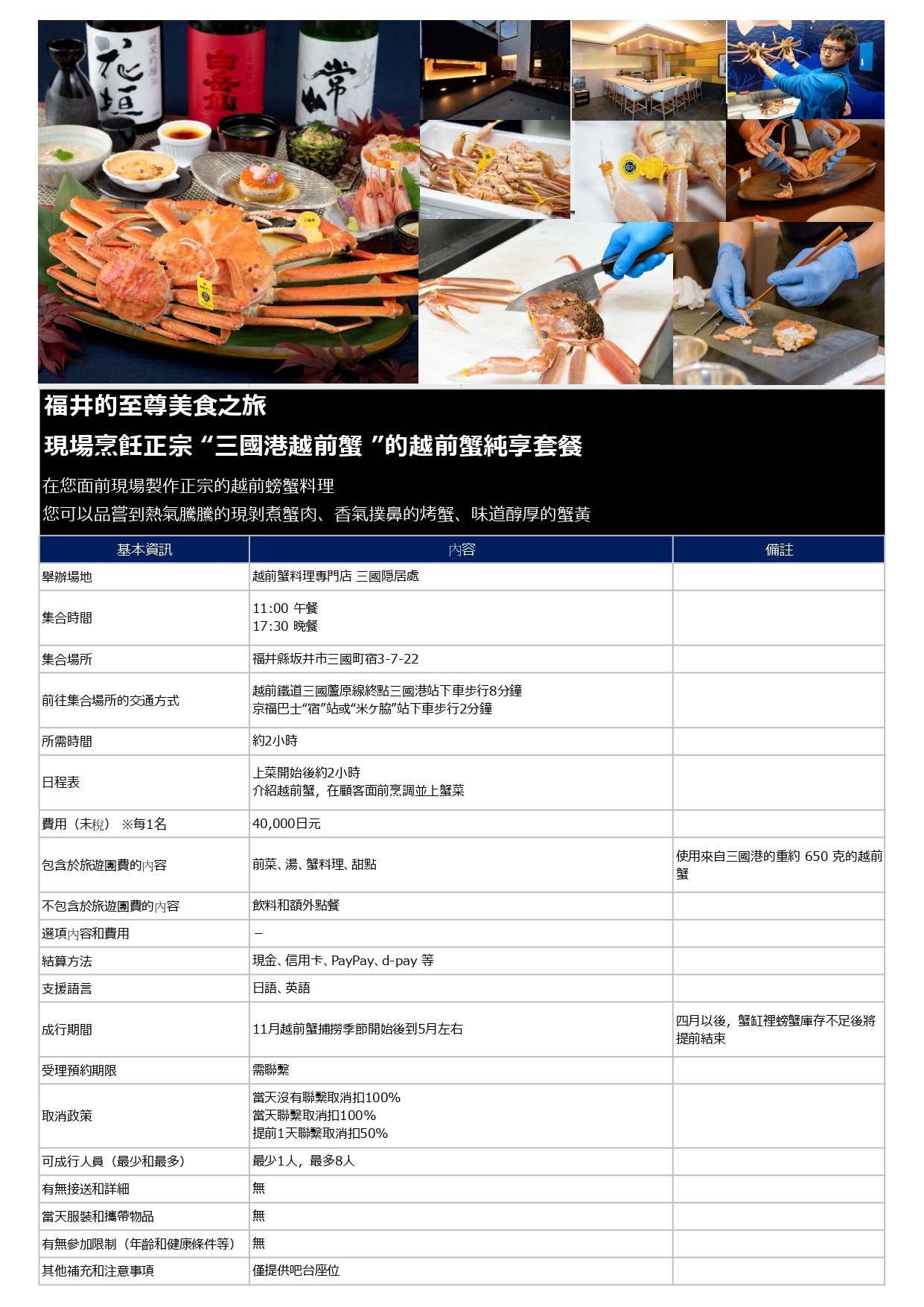 1. 福井的至尊美食之旅 現場烹飪正宗 “三國港越前蟹 ”的越前蟹純享套餐